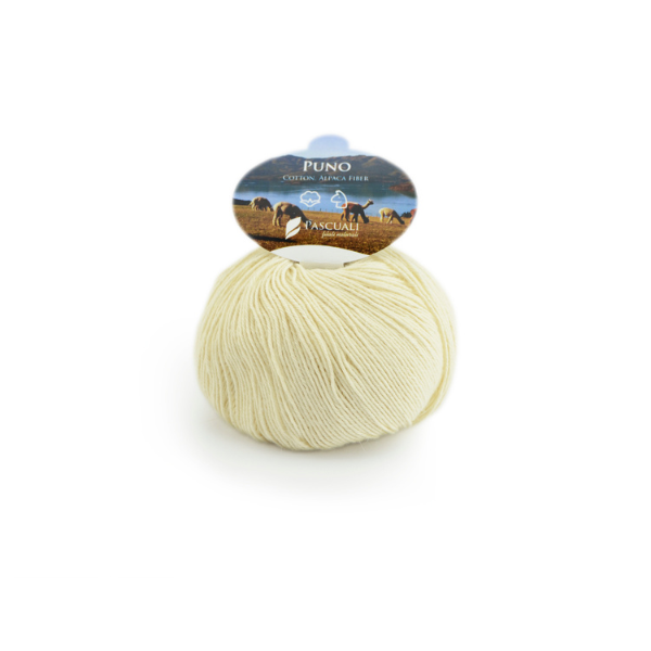 Puno fra Pascuali er en skøn blød blanding af bomuld og alpakauld. Garnet består af 70% GOTS-certificeret bomuld og 30% alpakauld, og begge dele kommer fra Peru, hvor garnet også spindes.